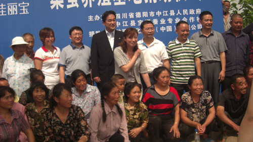 与蚕农合影
